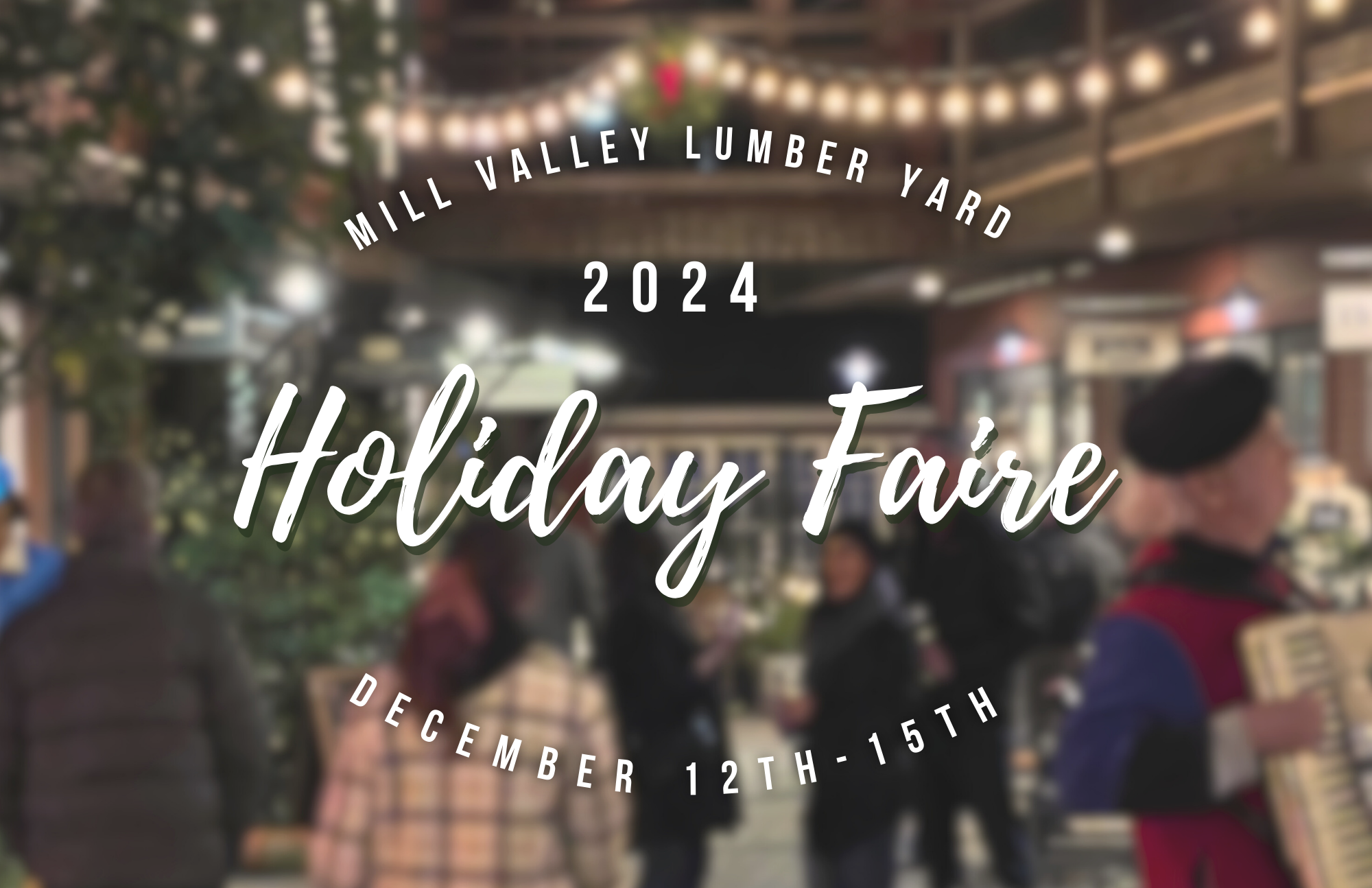 The Mill Valley Lumber Yard Holiday Faire is back! Feel the winter spirit and join us December 12-15th for live music, unique holiday shopping, photos with Santa, a dog parade, crafts, delicious food, warm drinks and a seat by the fire pit to enjoy the festivities.