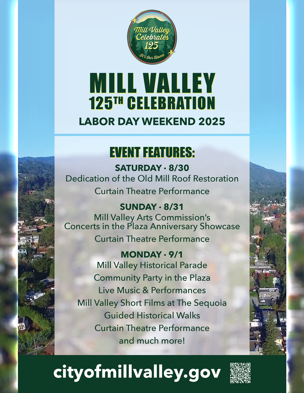 Join us Labor Day Weekend as we celebrate Mill Valley's 125th!