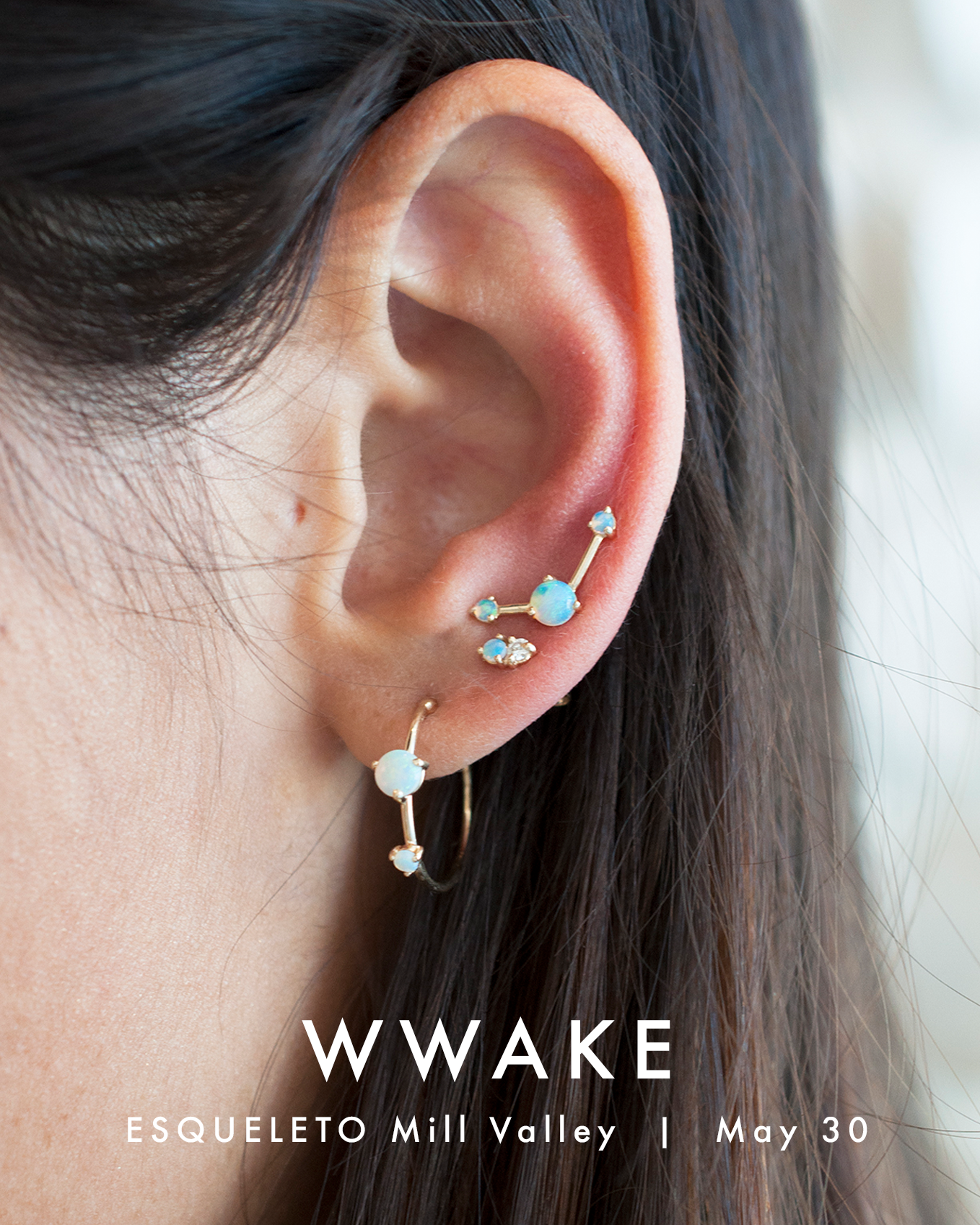 We are so excited to welcome designer Wing Yau of WWAKE to our Mill Valley store! For one day only Wing will be popping up with the full WWAKE collection of modernist fine jewelry. From tiny studs perfect for multi-pierce lobes, to layerable stone-studded necklaces, to classically proportioned engagement rings and wedding bands, the WWAKE collection has long been one of the most popular here at ESQUELETO. Wing will be bringing her full line of classic favorites and very special one-of-a-kind pieces!